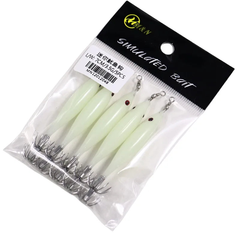 Ces hameçons spécialement conçus pour la pêche au calmar, poulpe et seiche combinent effet lumineux et imitation réaliste de crevette. Leur design optimisé garantit un accrochage efficace et une attraction maximale.